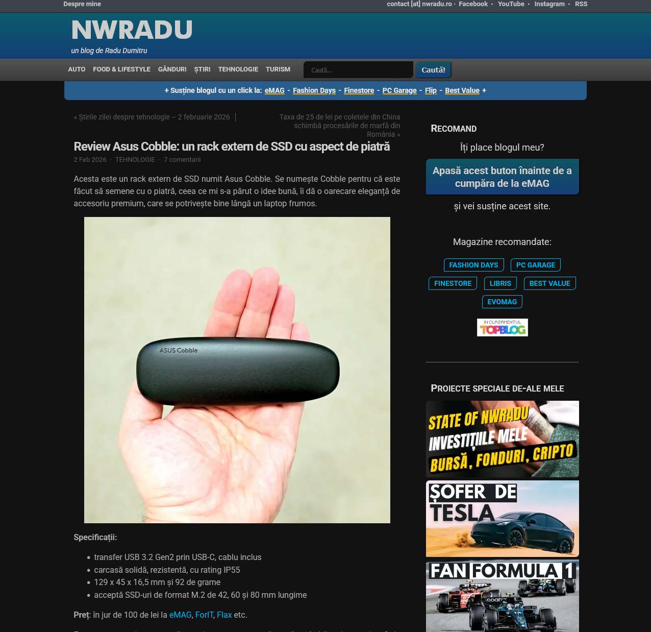 Review Asus Cobble: un rack extern de SSD cu aspect de piatra