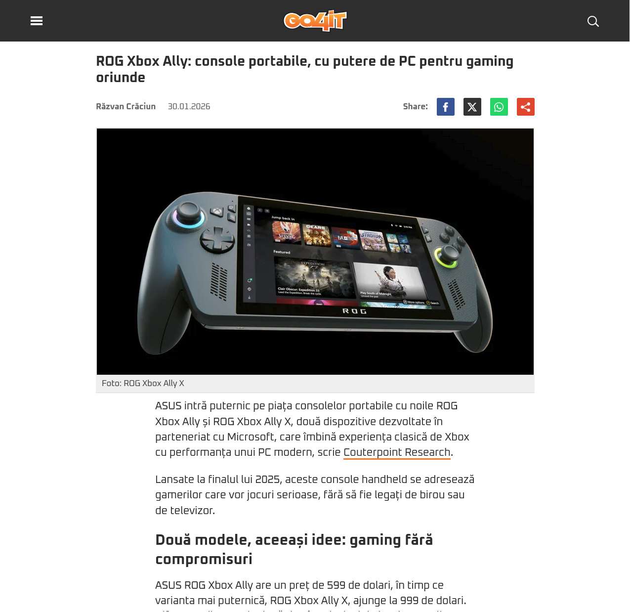 ROG Xbox Ally: console portabile, cu putere de PC pentru gaming oriunde