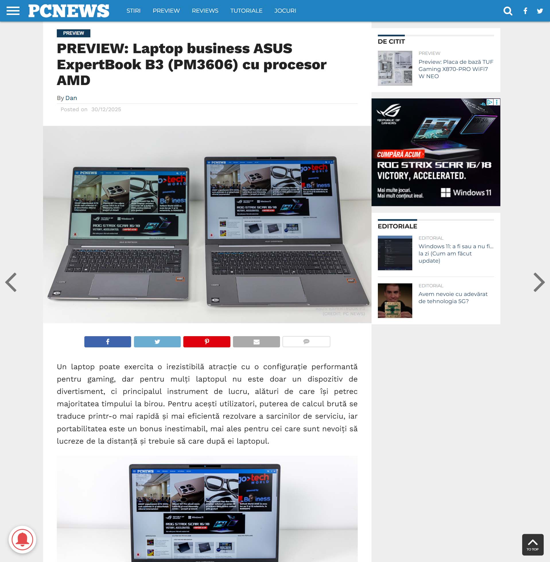 PREVIEW: Laptop business ASUS ExpertBook B3 (PM3606) cu procesor AMD