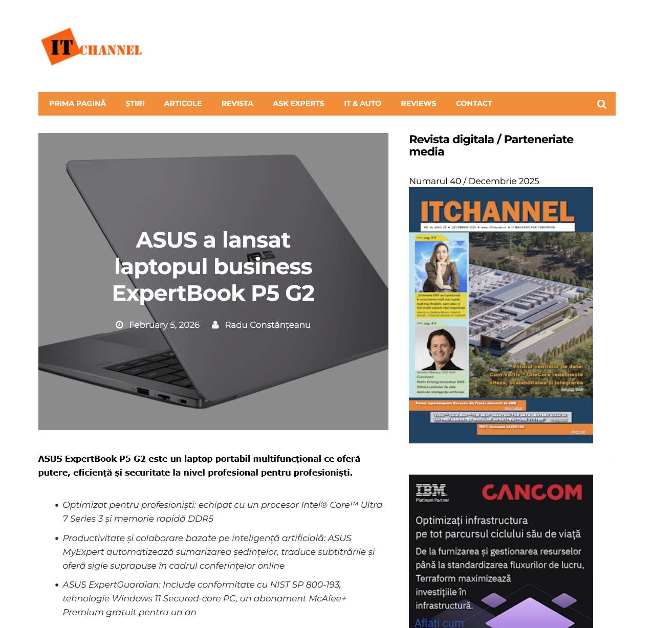 ASUS a lansat laptopul business ExpertBook P5 G2
