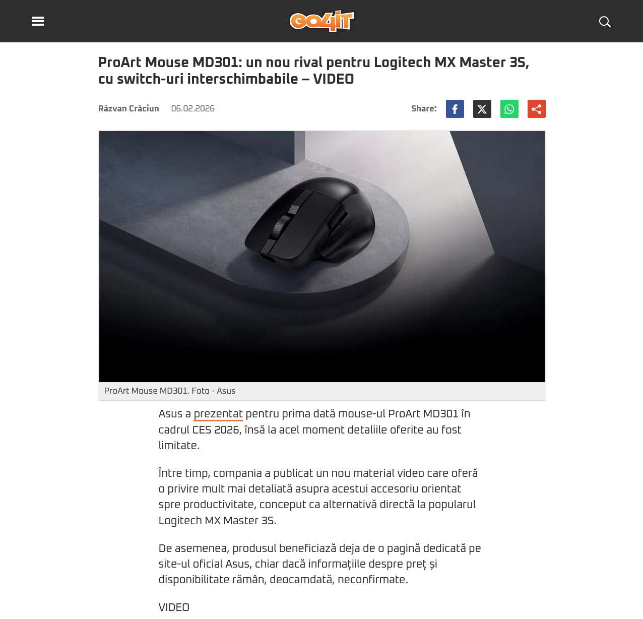 ProArt Mouse MD301: un nou rival pentru Logitech MX Master 3S, cu switch-uri interschimbabile – VIDEO
