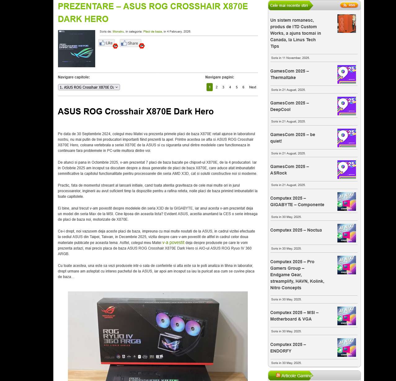 This article presents the features of the ASUS ROG Crosshair X870E Dark Hero motherboard alongside the ASUS ROG Ryuo IV 360 ARGB cooler.