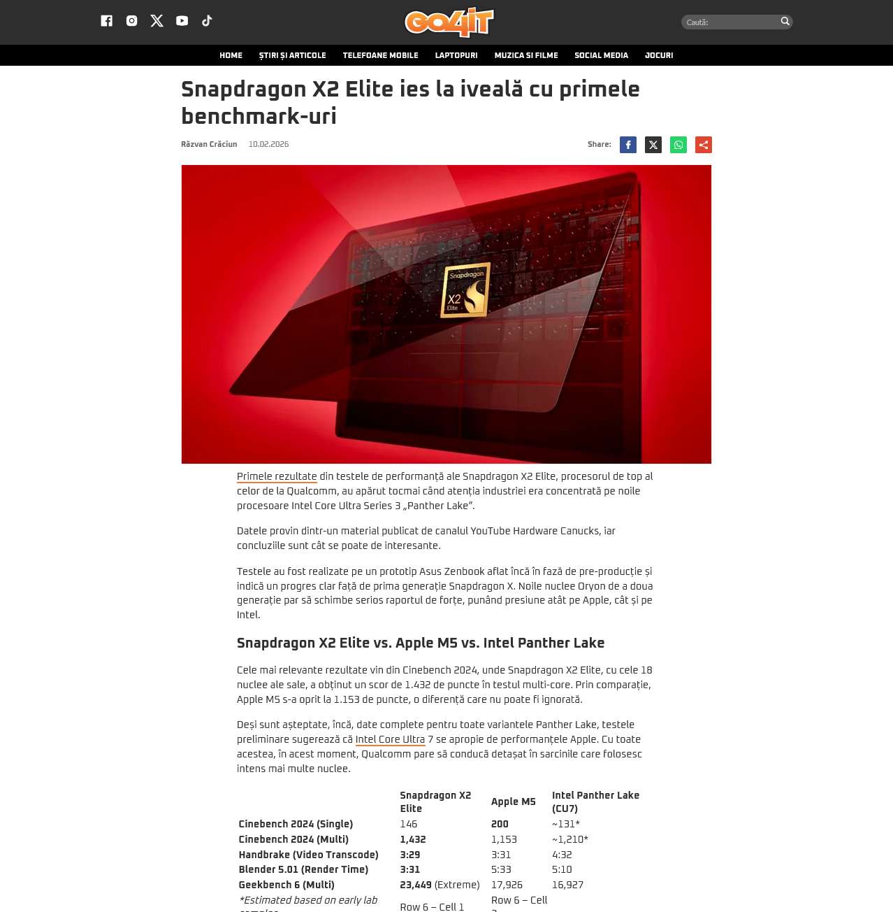 Snapdragon X2 Elite ies la iveala cu primele benchmark-uri