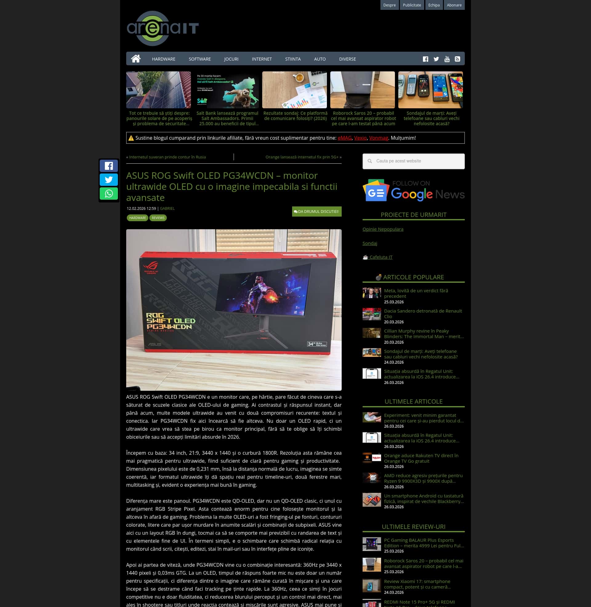 ASUS ROG Swift OLED PG34WCDN – monitor ultrawide OLED cu o imagine impecabila si functii avansate