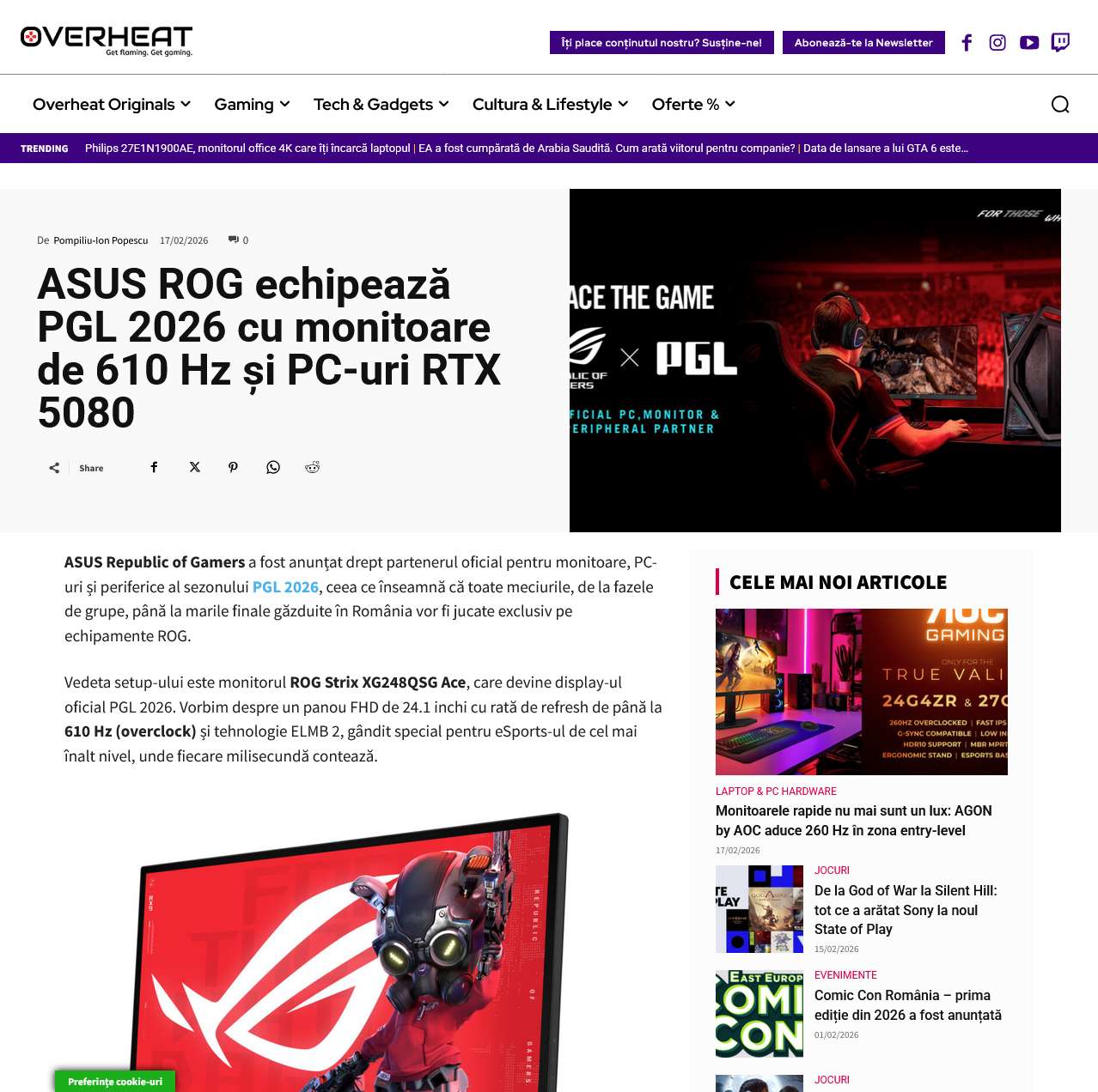 ASUS ROG echipează PGL 2026 cu monitoare de 610 Hz și PC-uri RTX 5080