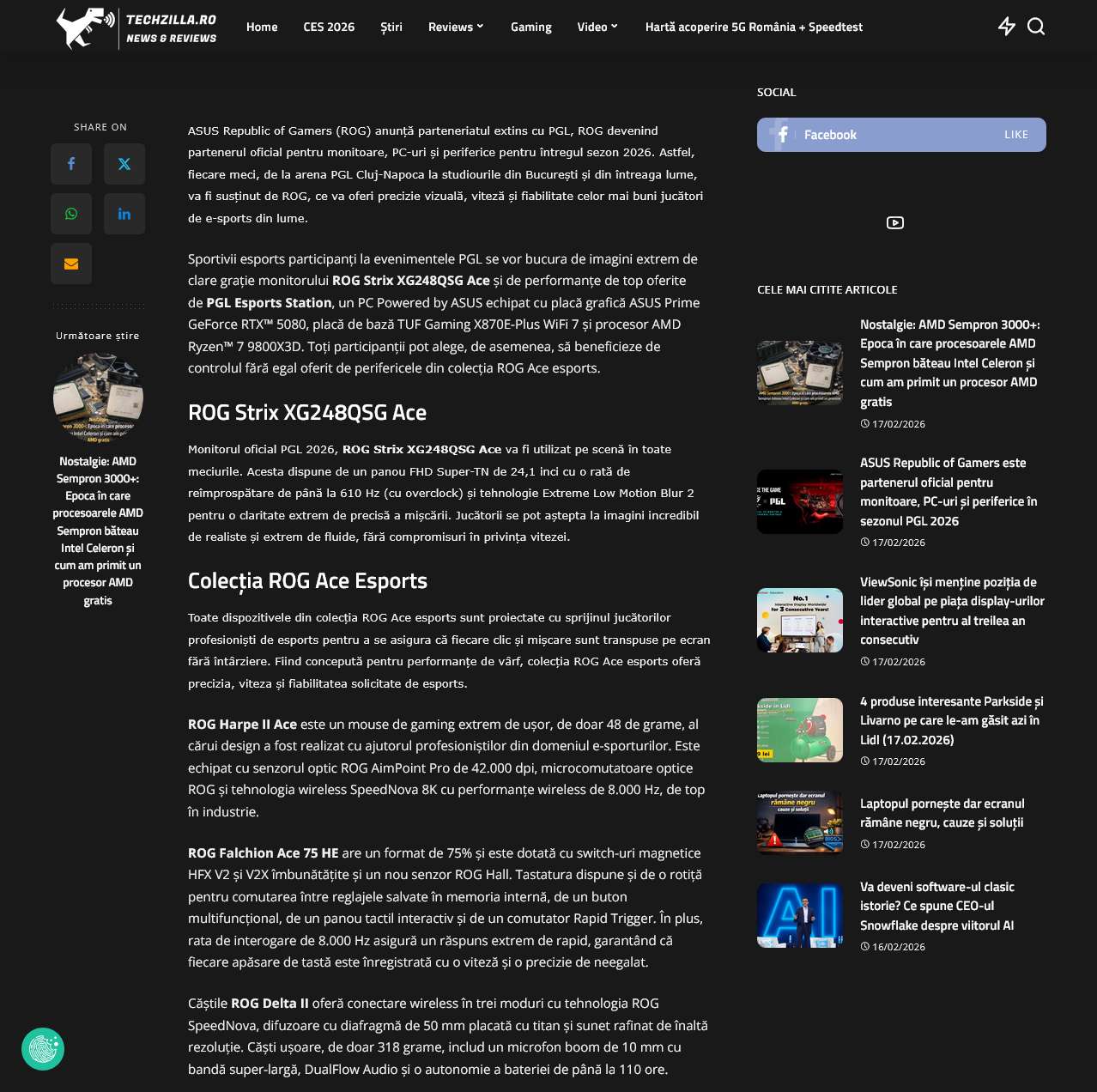 ASUS Republic of Gamers este partenerul oficial pentru monitoare, PC-uri și periferice în sezonul PGL 2026