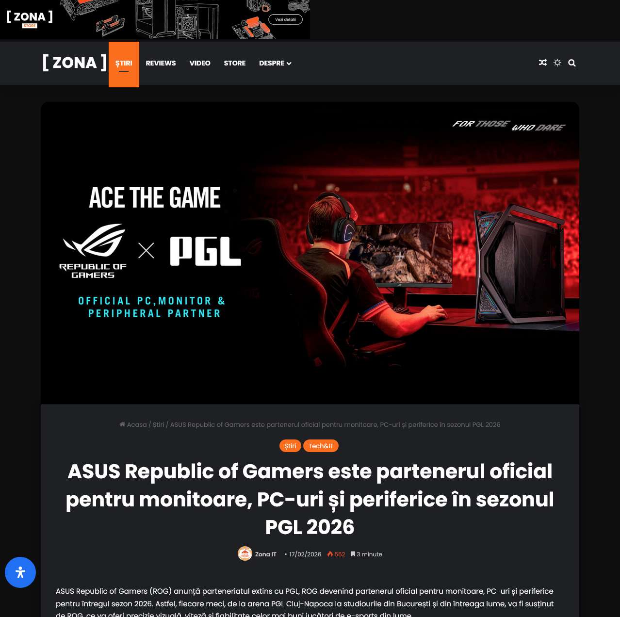 ASUS Republic of Gamers este partenerul oficial pentru monitoare, PC-uri și periferice în sezonul PGL 2026