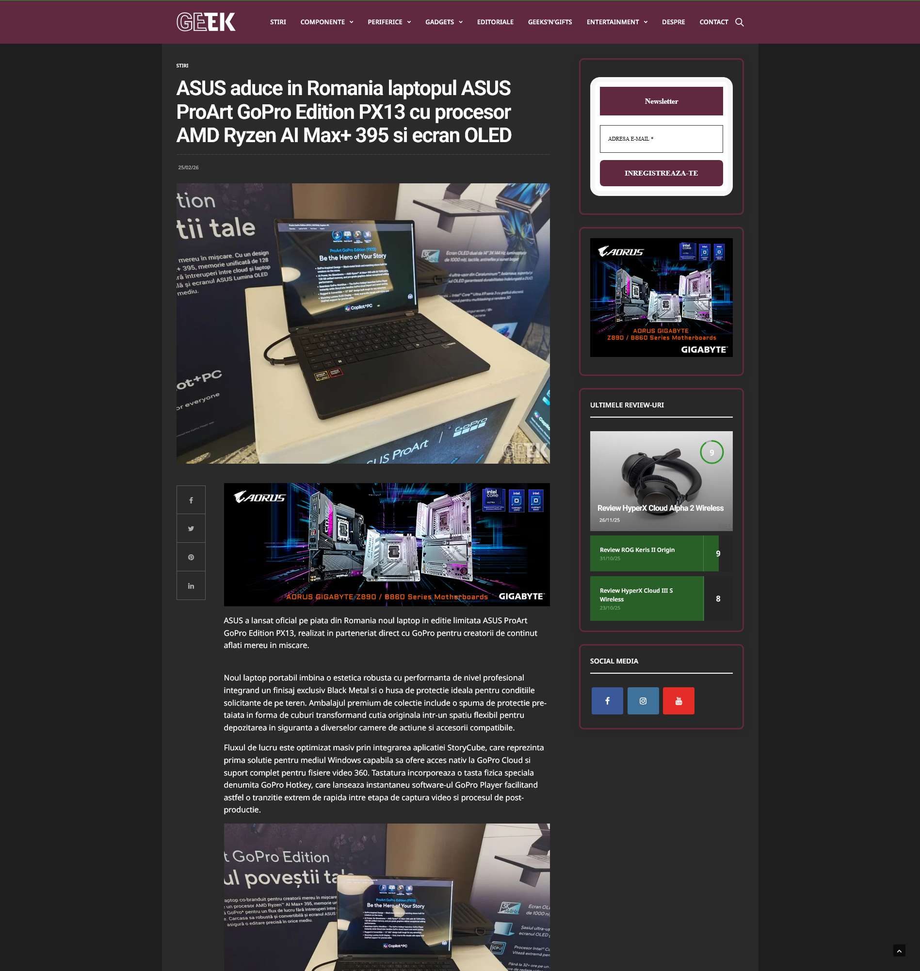 The limited edition ProArt GoPro Edition laptop (PX13), the result of a collaboration between ASUS and GoPro, is now available to users in Romania.