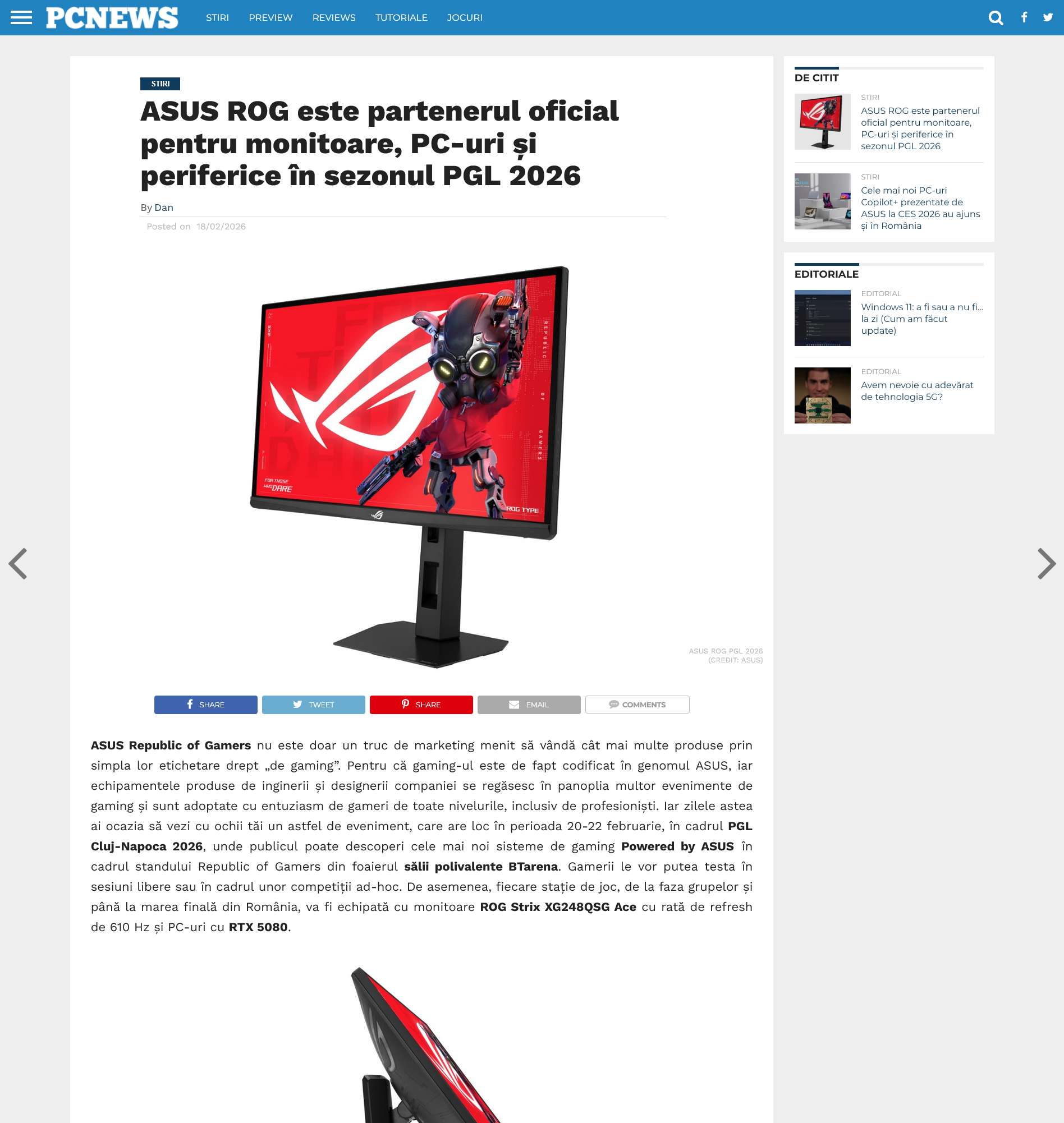 ASUS ROG este partenerul oficial pentru monitoare, PC-uri și periferice în sezonul PGL 2026