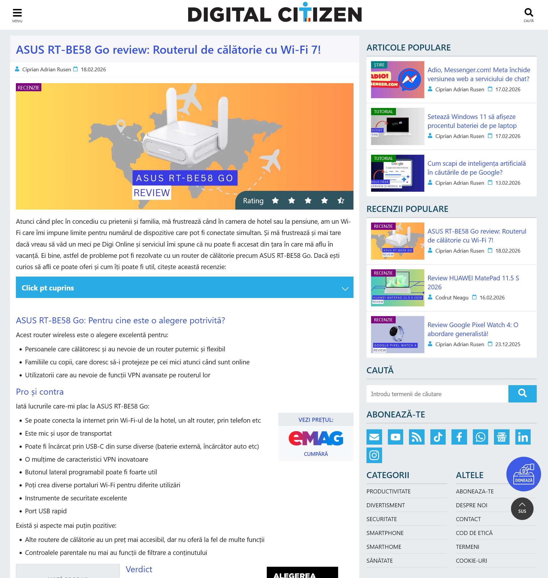 ASUS RT-BE58 Go review: Routerul de calatorie cu Wi-Fi 7!