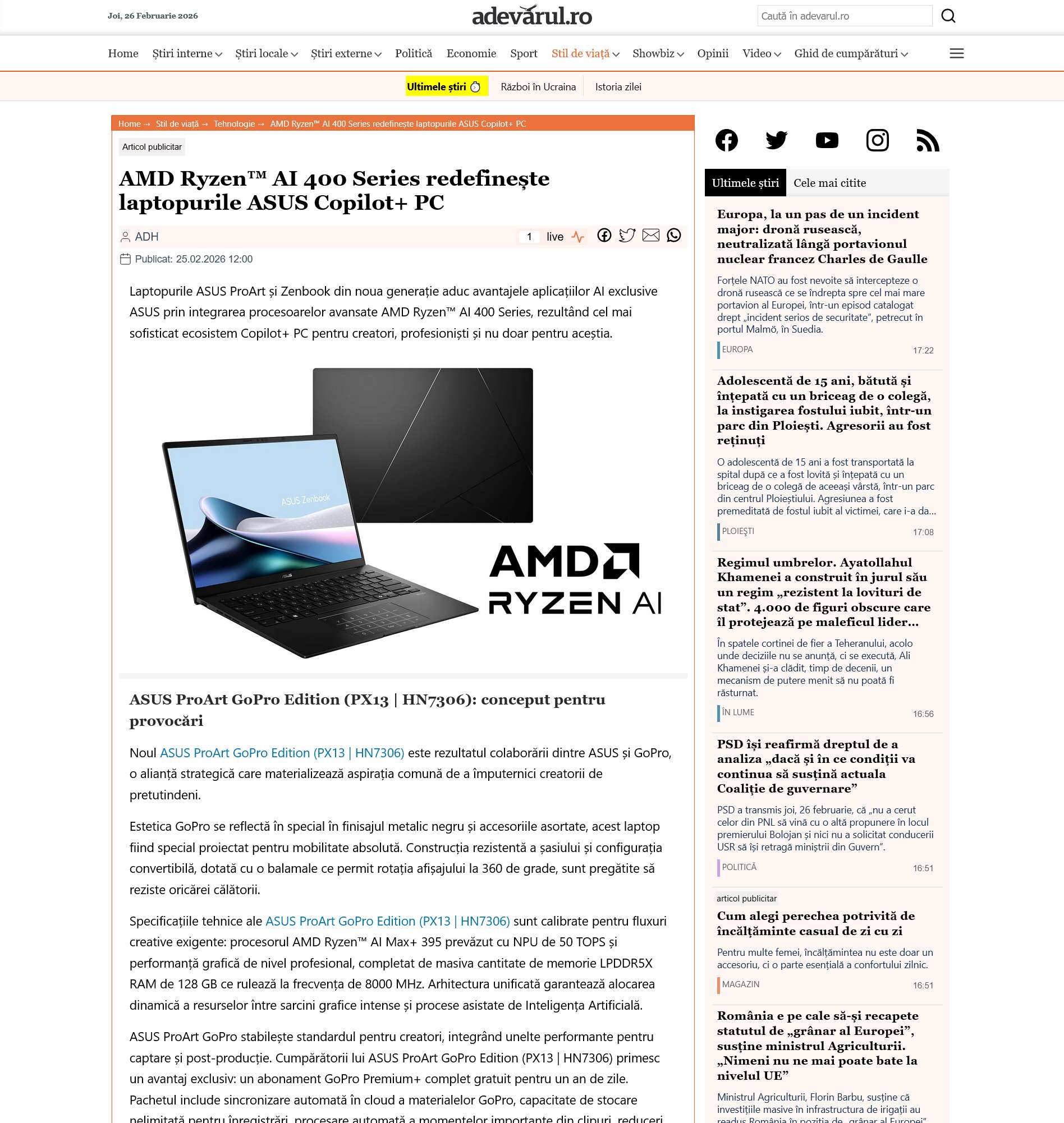 ASUS integrates AMD Ryzen AI 400 chips into ProArt and Zenbook Copilot+ PCs, delivering strong AI performance, premium design, durability, and exclusive GoPro perks. The lineup targets creators and professionals seeking power, portability, and military-grade reliability.