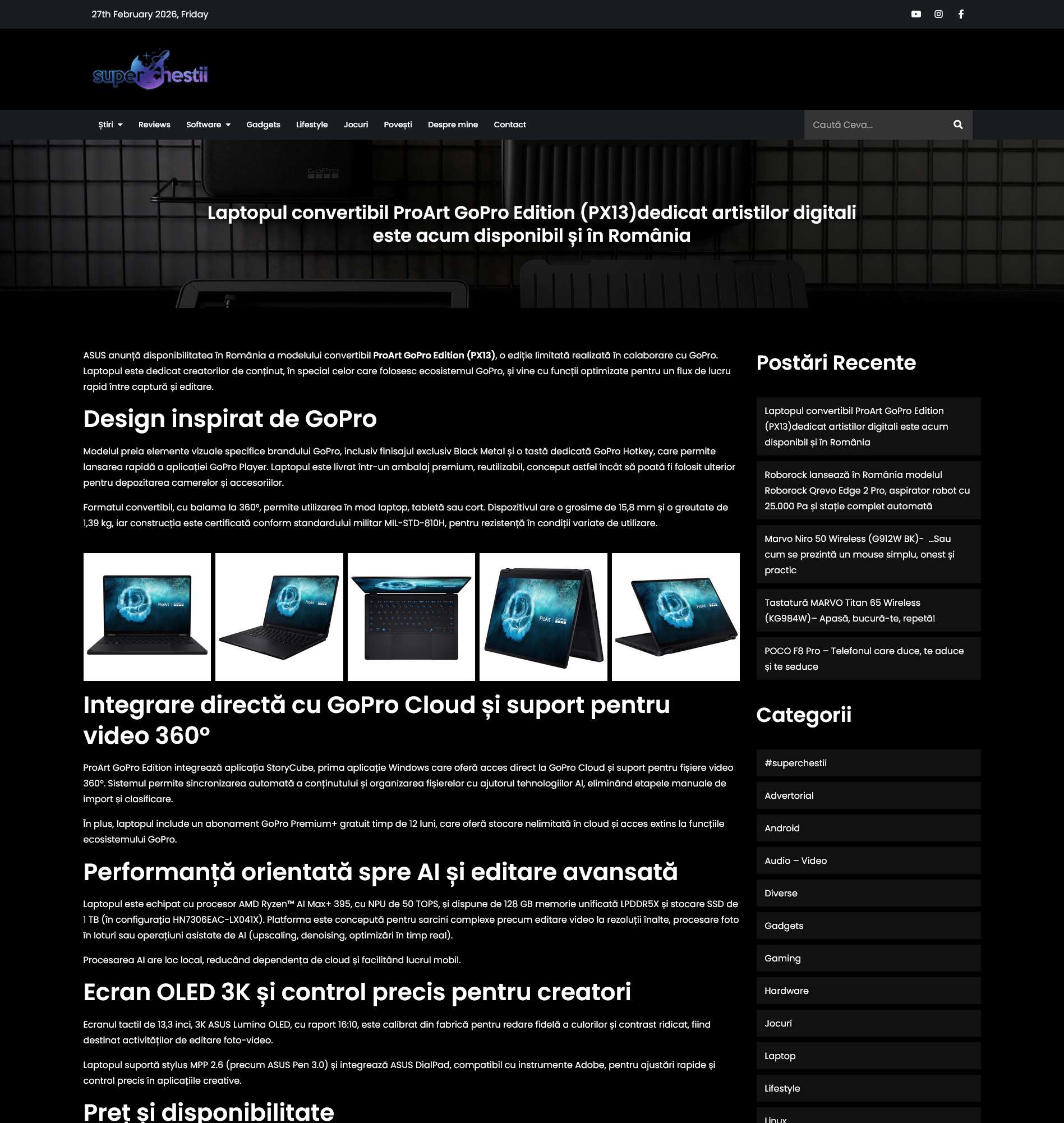 The limited edition ProArt GoPro Edition laptop (PX13), the result of a collaboration between ASUS and GoPro, is now available to users in Romania.