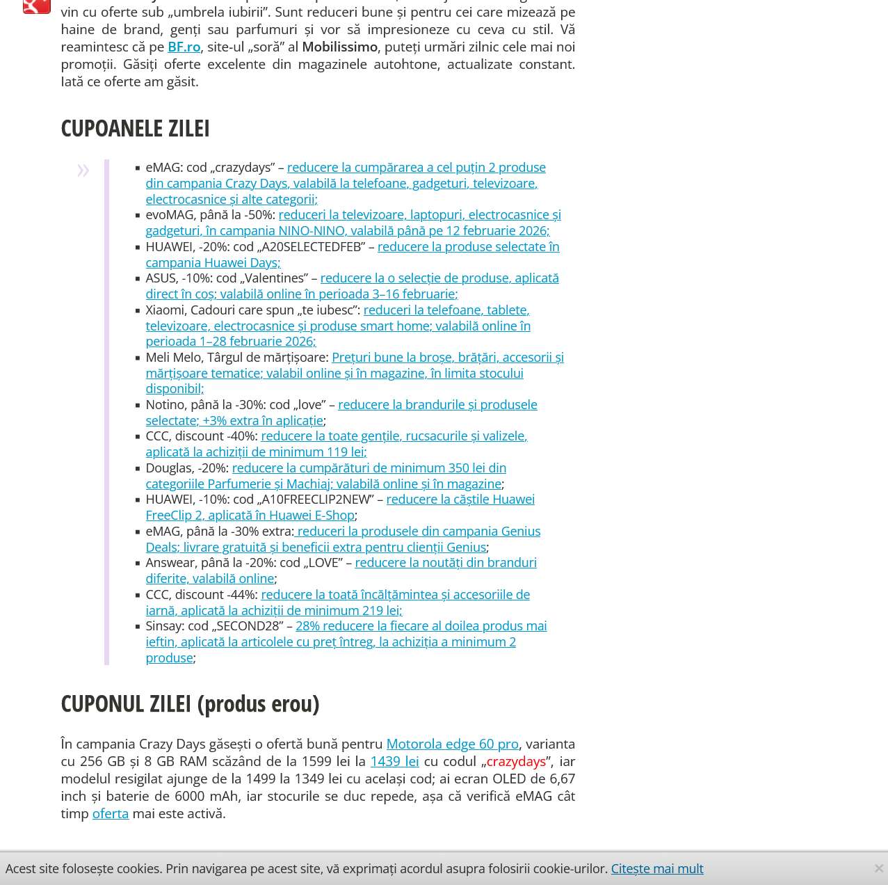 CUPOANELE ZILEI #859: Campania Crazy Days activa pe eMAG, oferte de Valentine’s Day la Asus, Huawei și Xiaomi, iar Notino reduce parfumurile