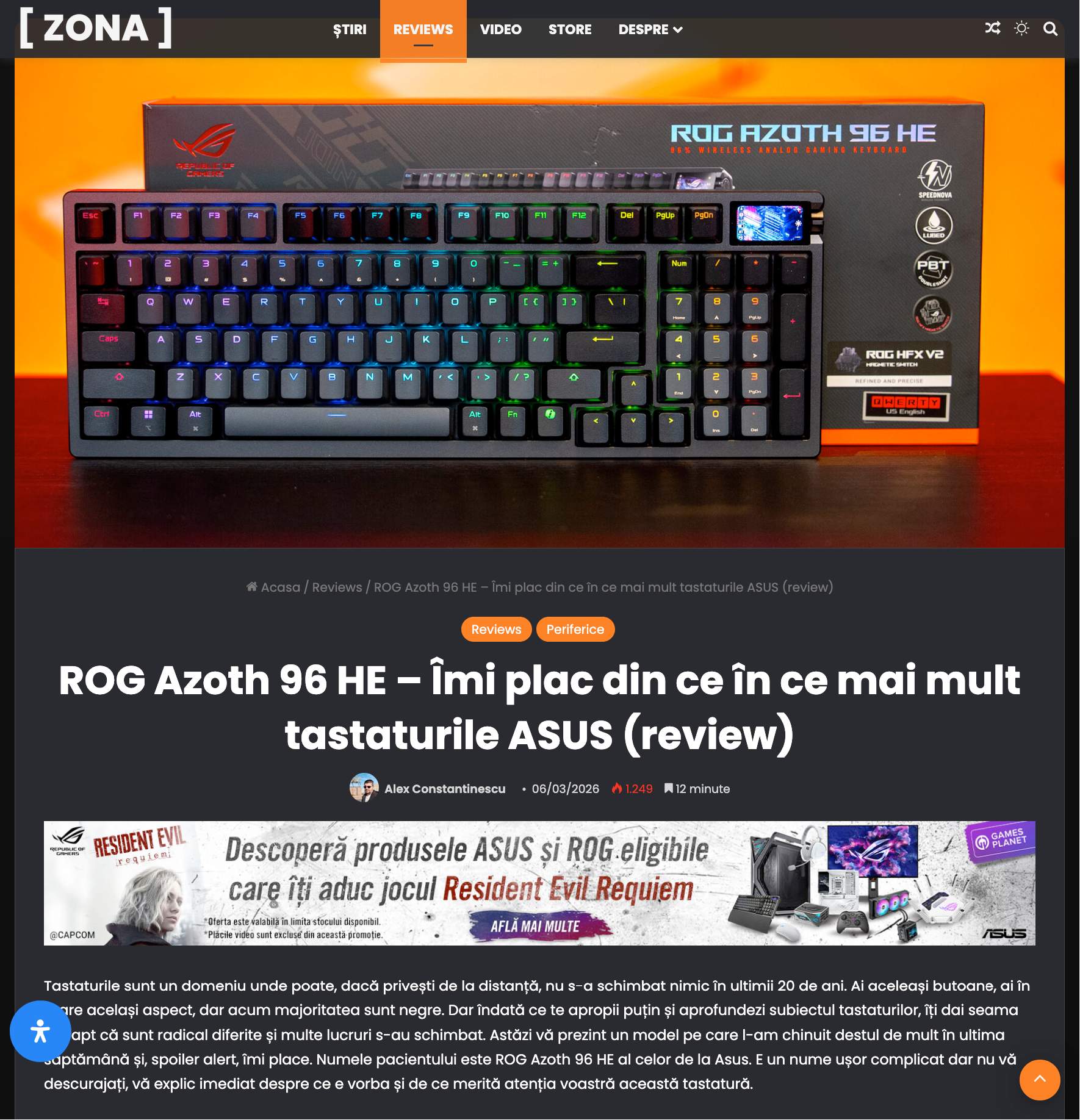 ROG Azoth 96 HE – Imi plac din ce in ce mai mult tastaturile ASUS (review)
