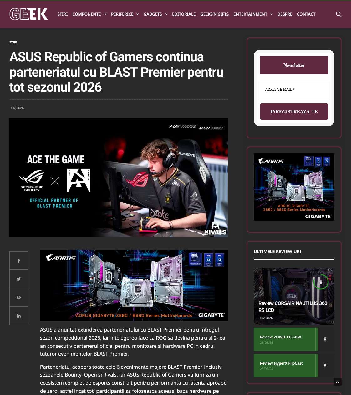 ASUS Republic of Gamers continua parteneriatul cu BLAST Premier pentru tot sezonul 2026