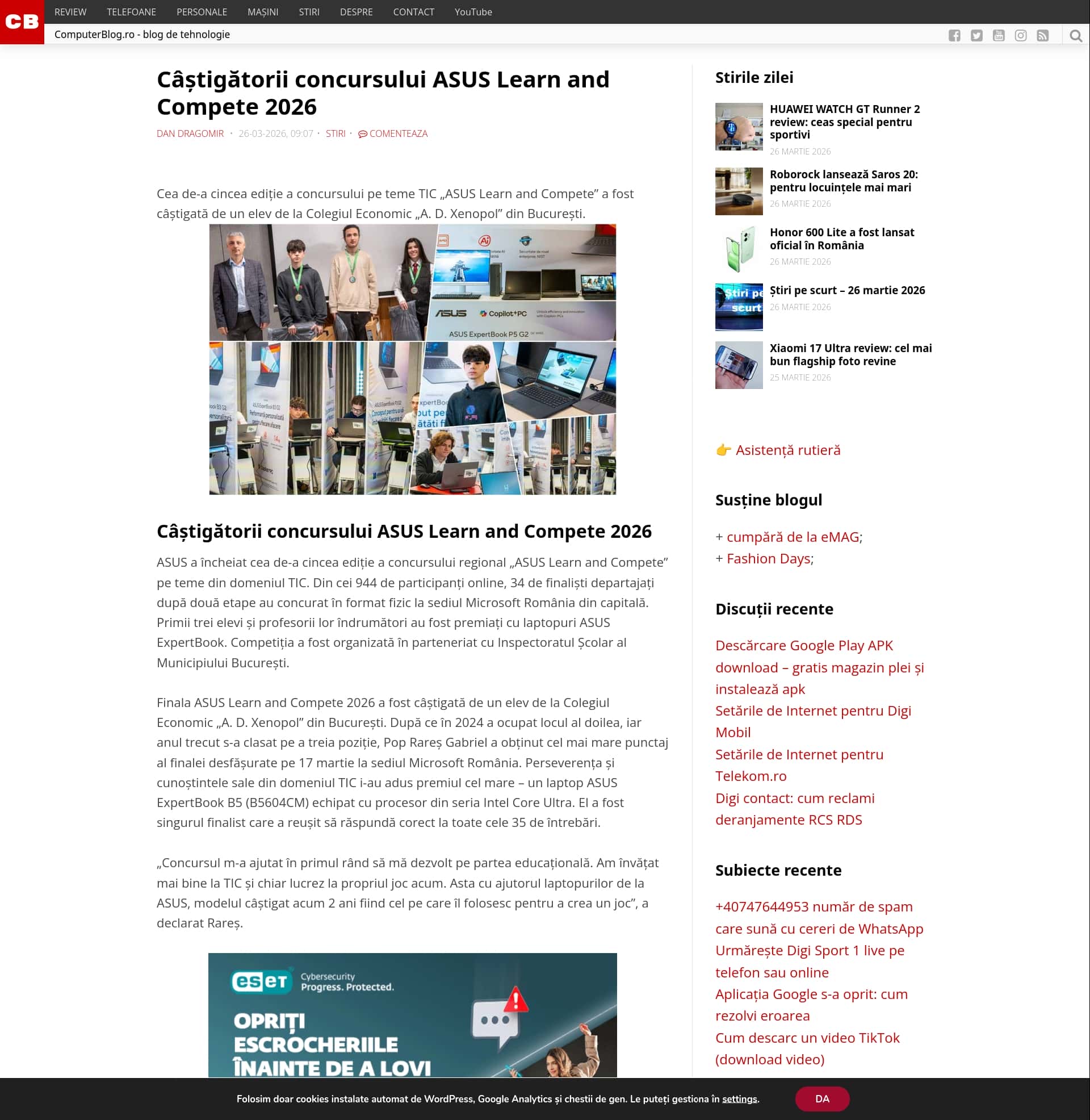 ASUS concluded the fifth edition of the regional “ASUS Learn and Compete” ICT contest. The top three students and their teachers were awarded ASUS ExpertBook laptops, and the competition was organized in partnership with the Bucharest School Inspectorate.