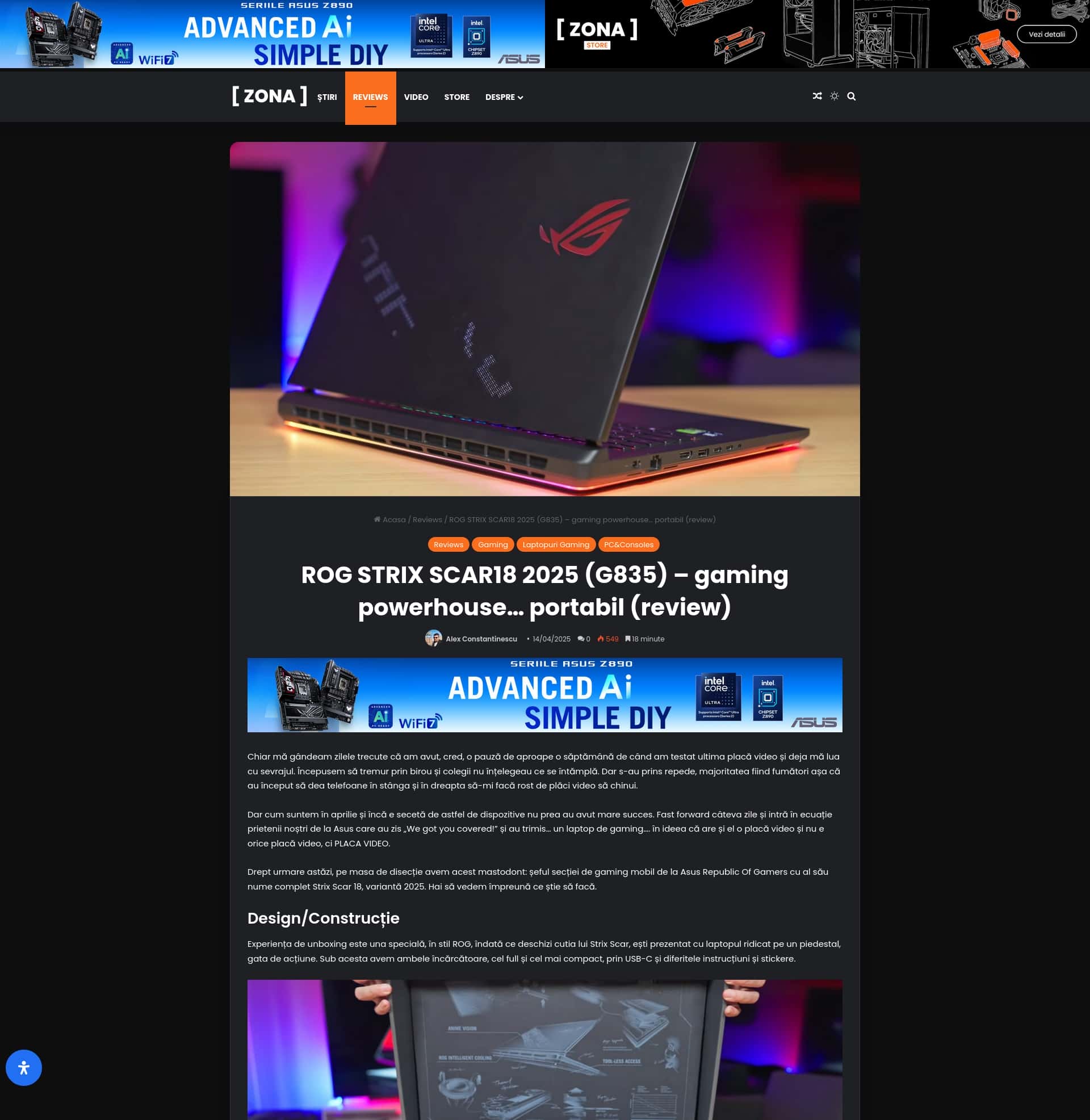 ROG STRIX SCAR18 2025 (G835) – gaming powerhouse… portabil (review)