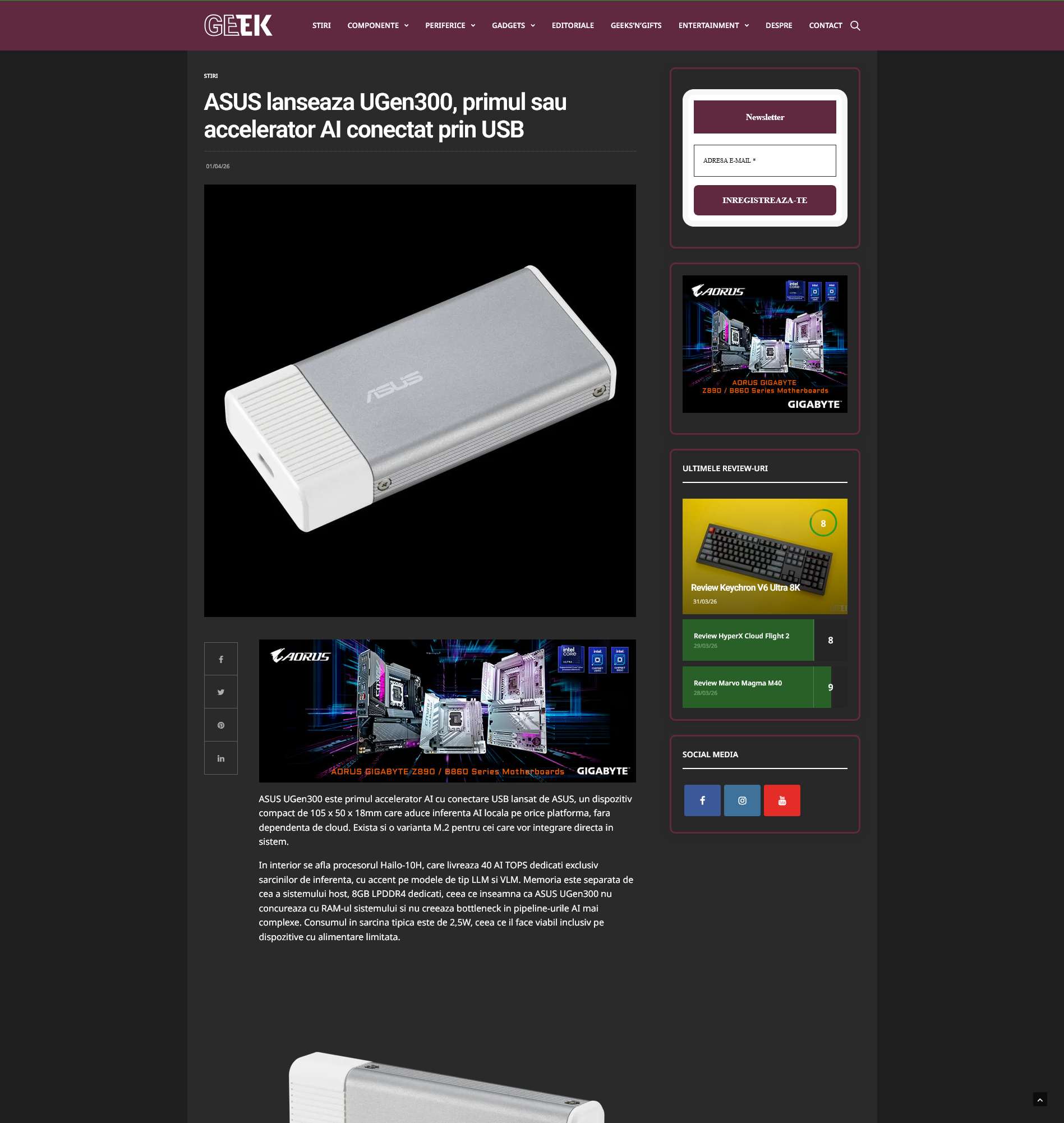 ASUS lanseaza UGen300, primul sau accelerator AI conectat prin USB