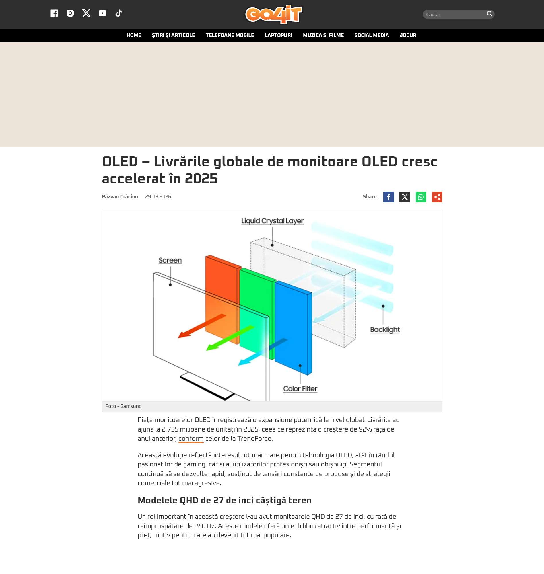 OLED – Livrarile globale de monitoare OLED cresc accelerat in 2025