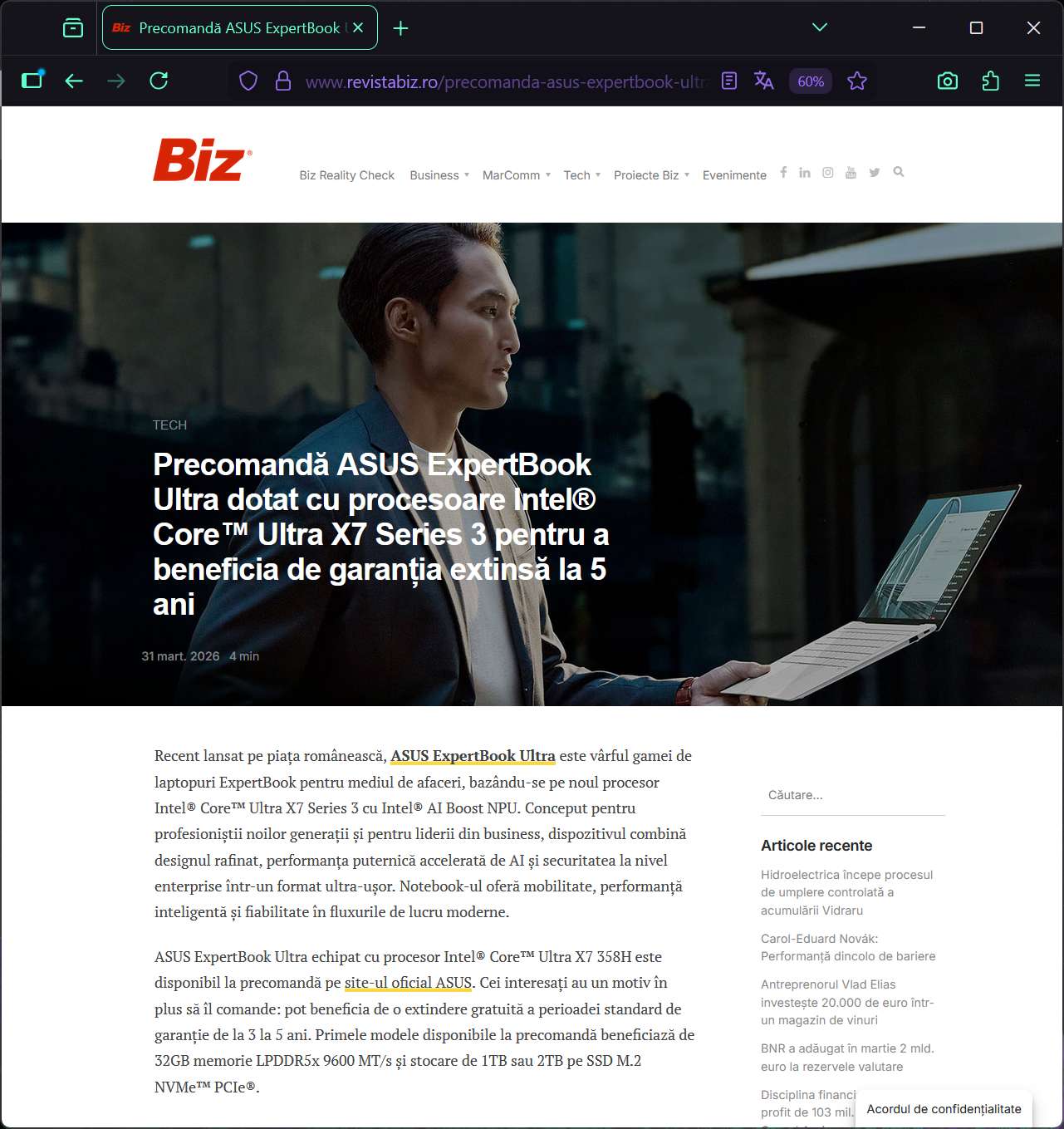 Precomandă ASUS ExpertBook Ultra dotat cu procesoare Intel® Core™ Ultra X7 Series 3 pentru a beneficia de garanția extinsă la 5 ani