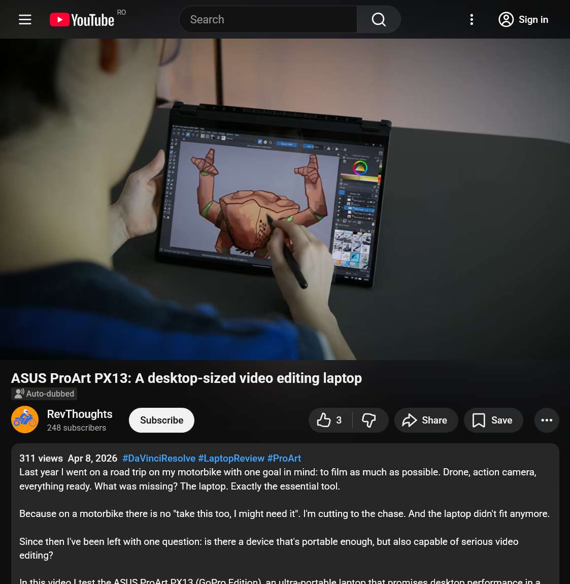 ASUS ProArt PX13: Un laptop pentru editare video cat un desktop