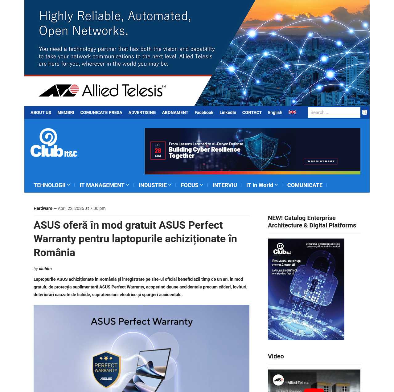 ASUS ofera in mod gratuit ASUS Perfect Warranty pentru laptopurile achiziționate in Romania