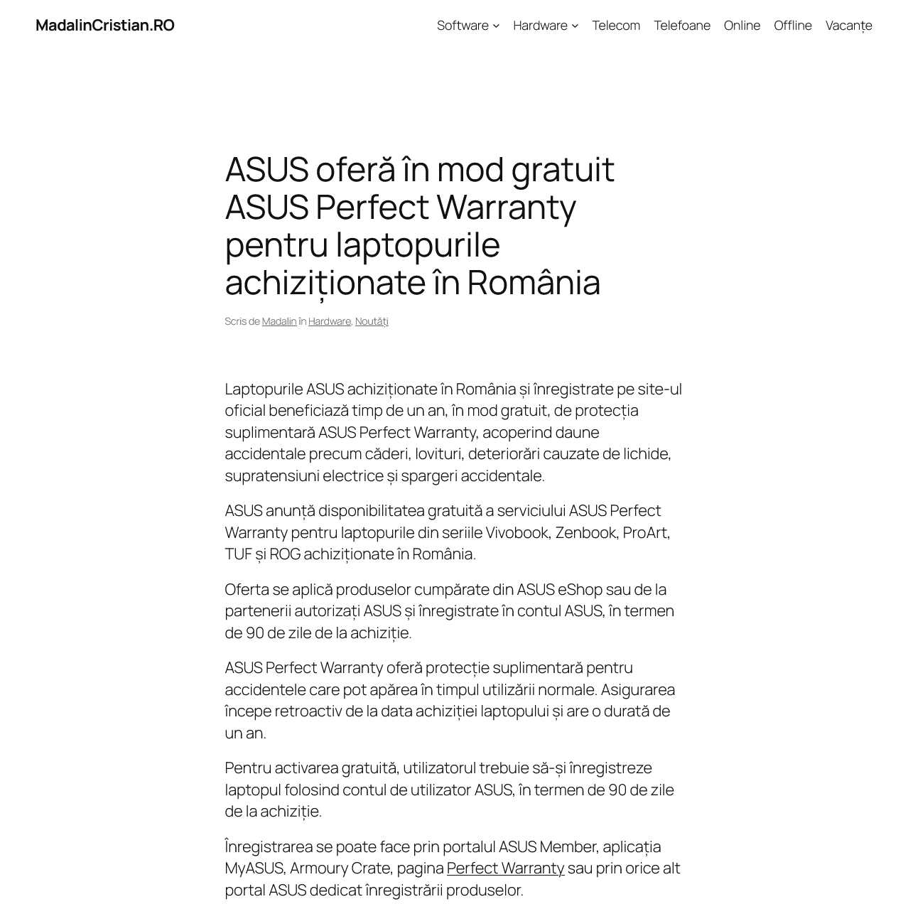 ASUS offers ASUS Perfect Warranty free of charge for laptops purchased in Romania