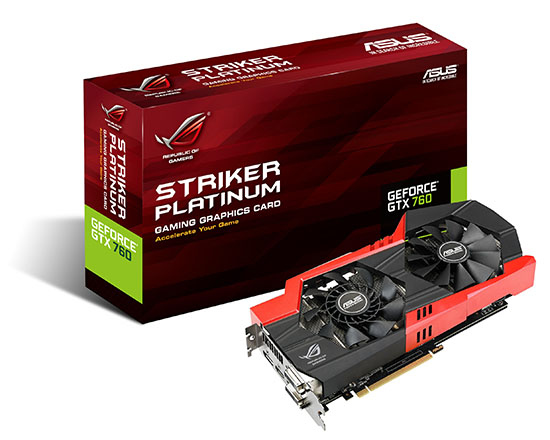 ROG Striker Platinum GTX 760 beneficiază de unități de procesare grafică (GPU) selectate în mod individual, oferind performanțe mai bune față de modelele obișnuite. Unitatea are o frecvență de 1085MHz, iar atunci când este supratactată urcă până la 1150MHz, cu 105MHz, respectiv 117MHz mai mult decât modelele de referință. Plusul de performanță de 10% este completat de cei 4GB de memorie GDDR5. Striker Platinum GTX 760 rulează în mod fluid jocuri la rezoluții de până la 2560x1600 pixeli.